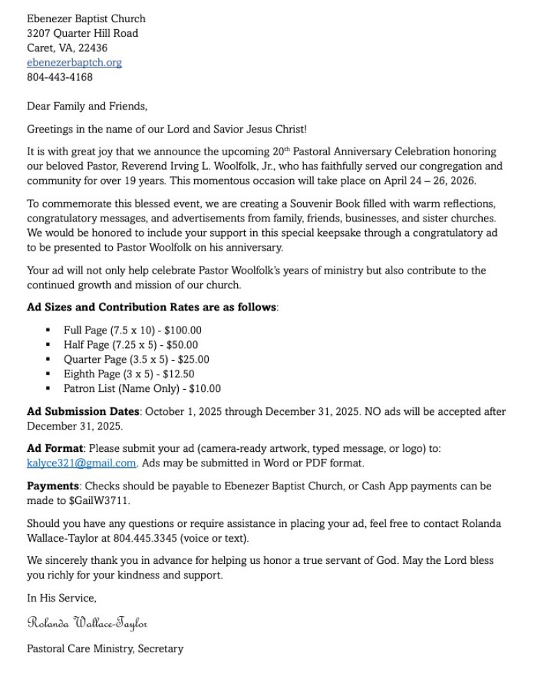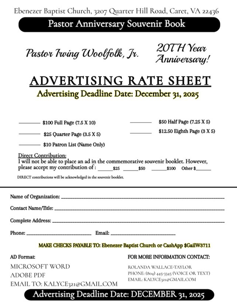 20TH PASTORAL ANNIVERSARY BOOK INFORMATION