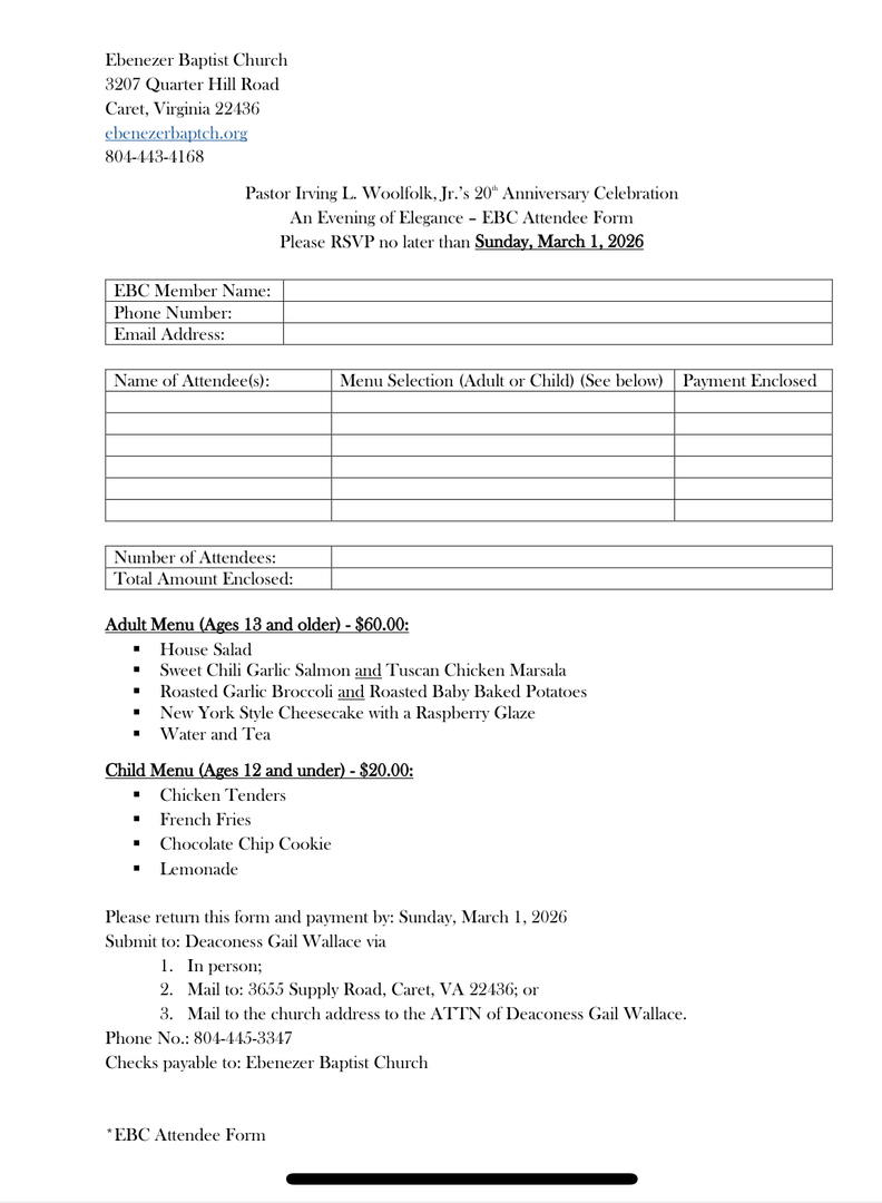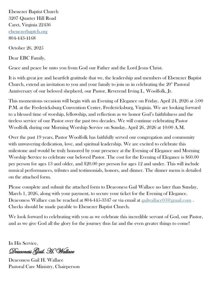 20TH PASTORAL ANNIVERSARY CELEBRATION INFORMATION