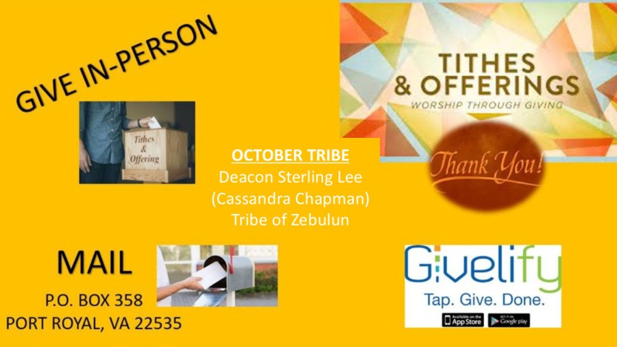 We are transitioning to give of our tithes and offerings via Givelify.com or the Givelify App Download on your cell phone. To give through the App, click the button at the bottom of the page, it will take you directely to the site.