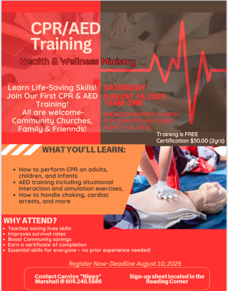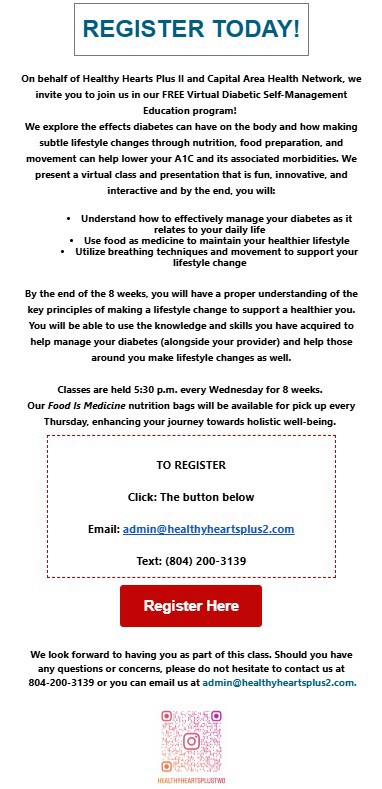 On Saturday, May 5 - 11:00 am - 12:30 pm, Health and Wellness will sponsor a Hypertension and Stroke Seminar w/ guest speaker.