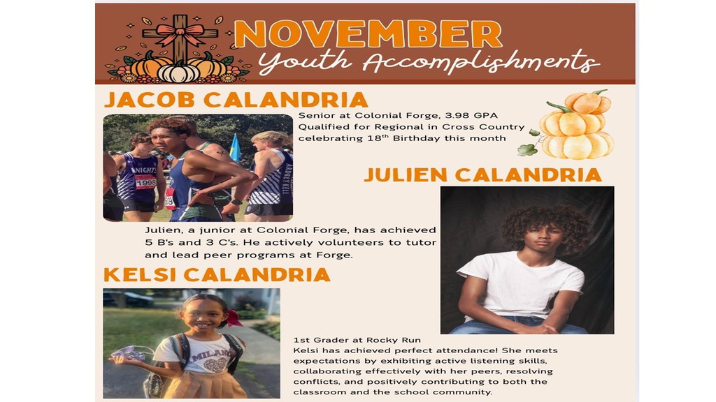ALL ACCOMPLISHMENTS ARE DUE BY THURSDAY BEFORE THE 1ST SUNDAY!