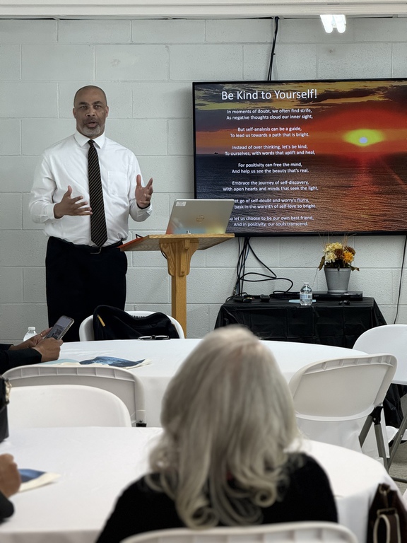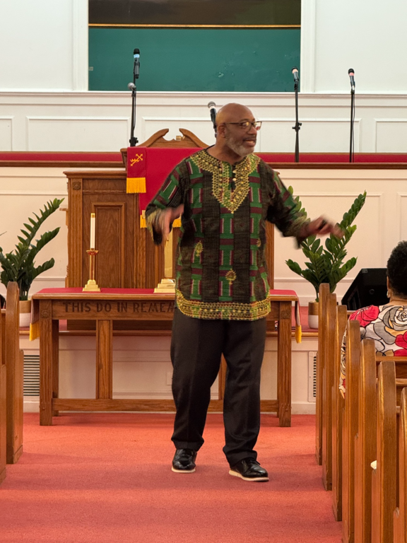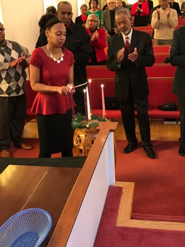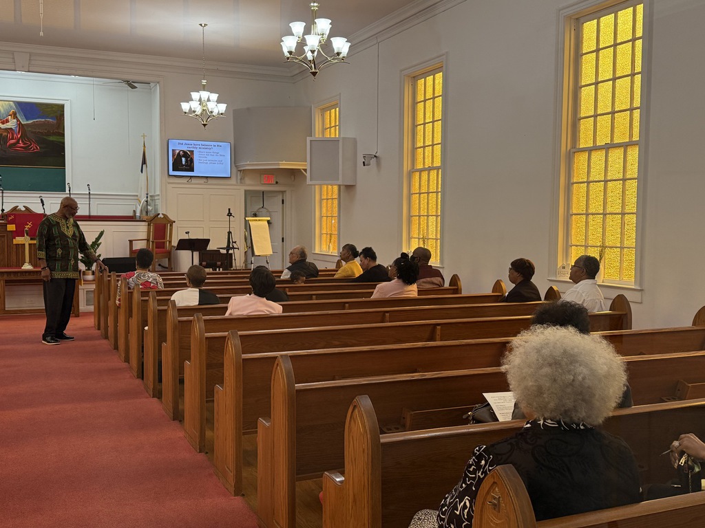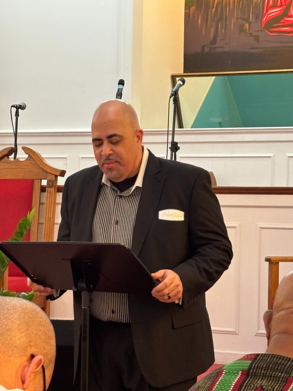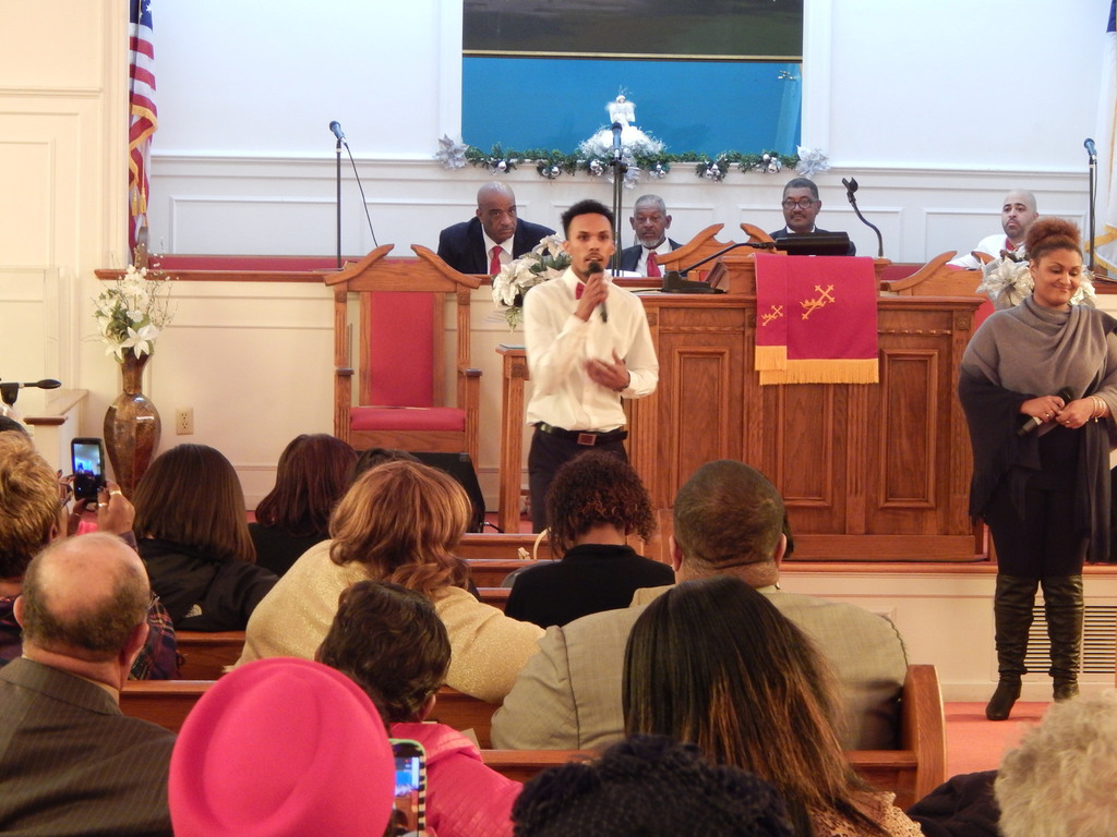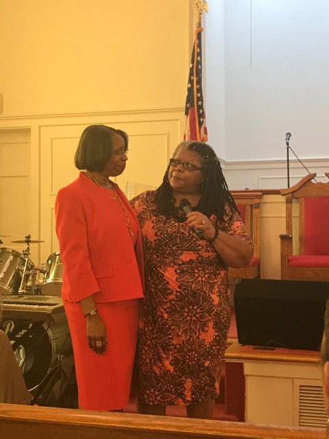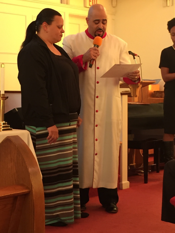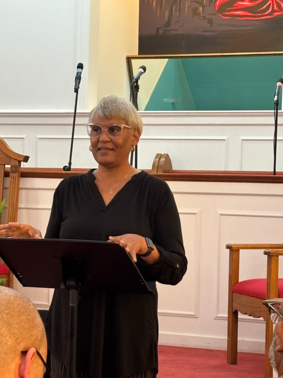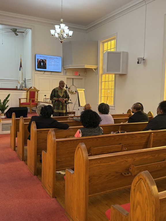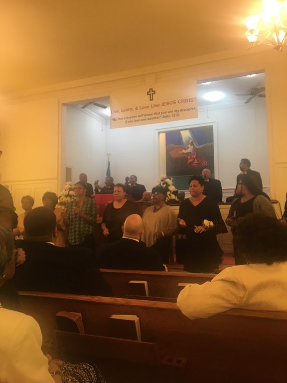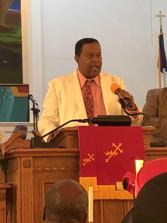 Captain Kaylah Young (daughter of Pastor and Lady Woolfolk) presents Military Flag hung over her base as she served in Kuwait April 2021 to April 2022. You can view it hung in the church along with Colonel Calvin Hudson's presentation when he served a tour.